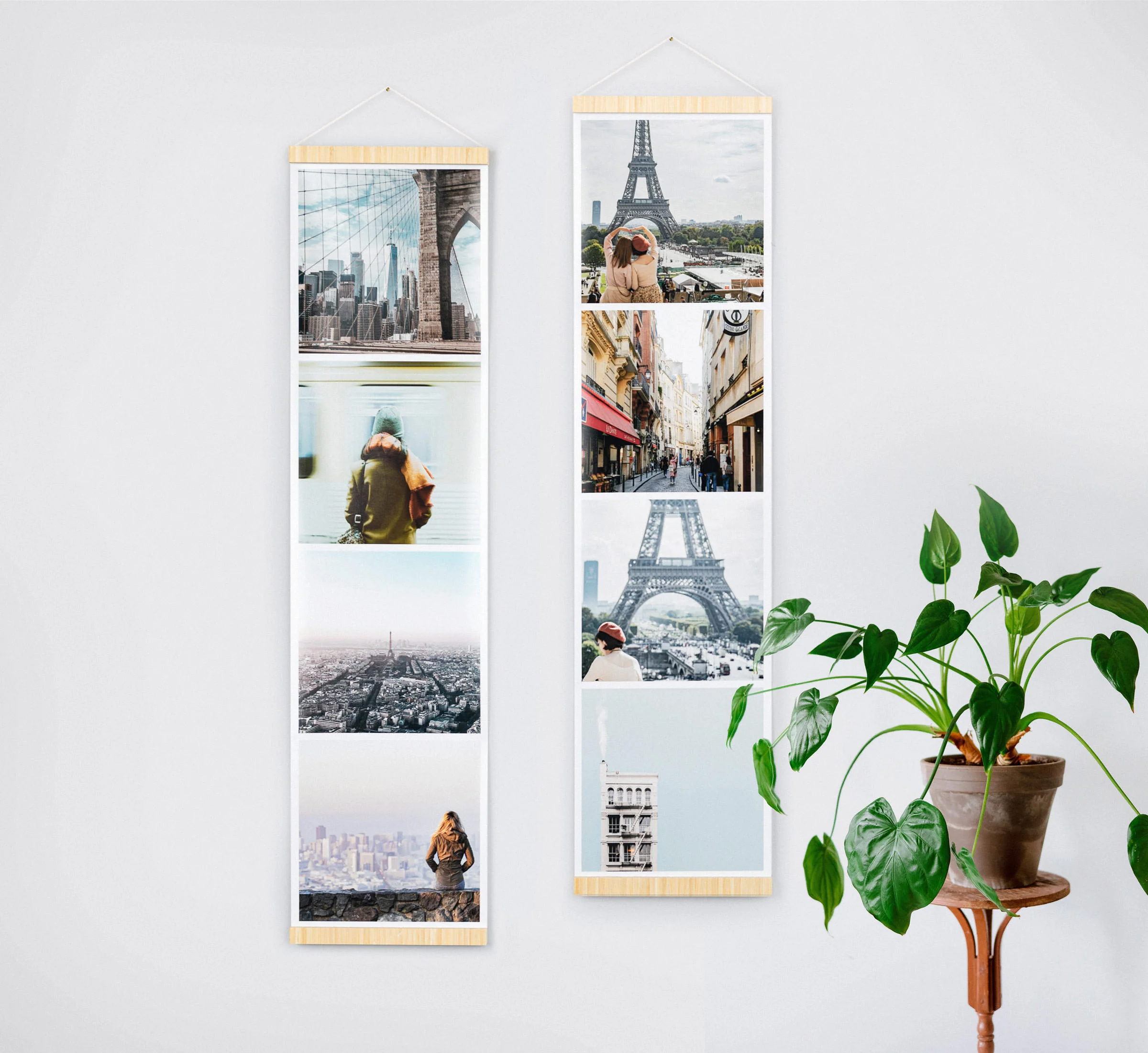 Now made of bamboo! These unique print hangers are handcrafted from beautifully sustainable bamboo. They grip together with super‐strong mini magnets and can be hung on your wall with the enclosed string or can be mounted directly to the wall with predrilled holes.